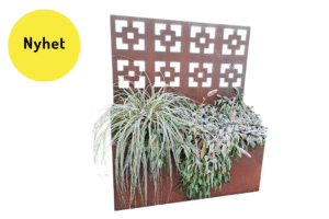 Tuffa planteringskärl i rostrött cortenstål. Flera olika standardstorlekar eller tillverkning med egna mått.