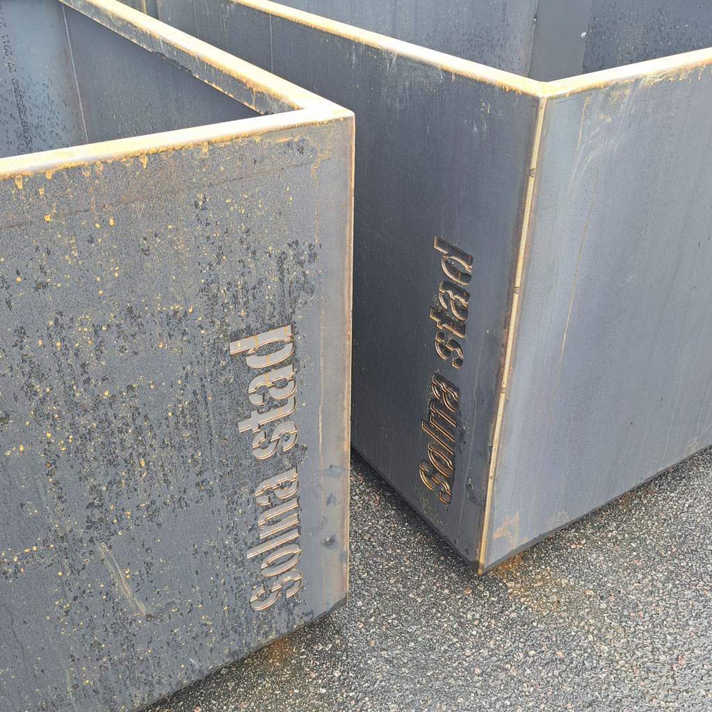 Cortenstål är ett mycket lättskött och slitagetåligt material som lämpar sig mycket väl för tuffa offentliga miljöer!